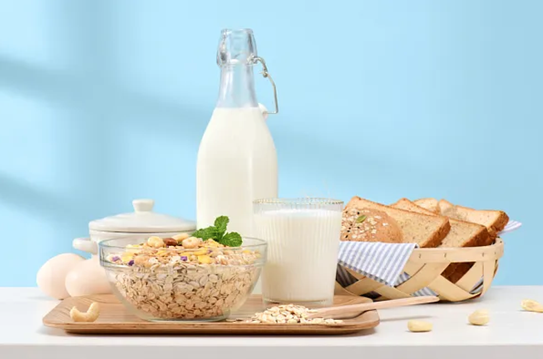 健康吃法:在食用牛奶、雞蛋的同時(shí),搭配少油少糖的面包、饅頭或燕麥等主食幫助補(bǔ)充能量,搭配黃瓜、西紅柿等幫助補(bǔ)充維生素和膳食纖維。