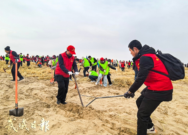 金秋十月,沙海披“甲”。10月22日,涼州區(qū)2025年秋季機關(guān)干部職工義務(wù)壓沙活動在鄧馬營湖拉開序幕,來自全區(qū)118個單位的6000多名干部職工奔赴至此?